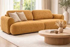 Kanapa Italy w tkaninie Flow 13 w kolorze Dijon to nowoczesne połączenie elegancji, funkcjonalności i ponadczasowego designu. Ciepły, musztardowy odcień Dijon wprowadza do wnętrza energię, charakter i przytulność, jednocześnie doskonale komponując się z aranżacjami nowoczesnymi, loftowymi oraz skandynawskimi. Welwetowa struktura tkaniny z delikatnym połyskiem nadaje kanapie eleganckiego wyglądu i sprawia, że mebel staje się wyrazistym elementem salonu.