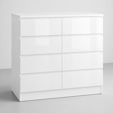 Komoda MARTUSIA to doskonałe połączenie funkcjonalności, estetyki i wysokiej jakości wykonania. Jej elegancki biały połysk na frontach w zestawieniu z matowym korpusem wprowadza do wnętrza lekkość i nowoczesny akcent, idealnie komponując się zarówno z aranżacjami sypialni, jak i salonu.