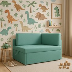 Sofa rozkładana dziecięca Viluś 108/81/78 cm – narożnik jednoosobowy do pokoju dziecka w kolorze miętowym z funkcją spania i pojemnikiem na pościel