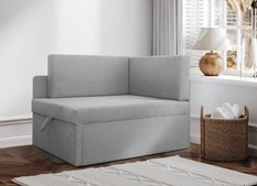 Sofa rozkładana dziecięca Viluś 108/81/78 cm – narożnik jednoosobowy do pokoju dziecka w kolorze szarym z funkcją spania i pojemnikiem na pościel