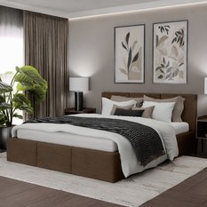 Łóżko Tapicerowane Do Sypialni 140x200 Podwójne z Pojemnikiem Brązowe