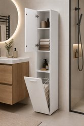Dzięki nowoczesnemu słupkowi łazienkowemu LUBA IA 30 cm z koszem na pranie, zyskasz nie tylko dodatkową przestrzeń do przechowywania, ale także wygodne miejsce na bieliznę. To praktyczne rozwiązanie, które pomaga utrzymać porządek i maksymalnie wykorzystać dostępną przestrzeń.