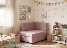 Viluś 108/81/78 cm to kompaktowy narożnik dziecięcy, który łączy nowoczesny design, wygodę oraz maksymalną funkcjonalność. Doskonale sprawdzi się w pokoju dziecka, ale również w mniejszych przestrzeniach salonu czy sypialni. Ten rozkładany mebel zachwyca praktycznymi rozwiązaniami oraz uroczą, przytulną kolorystyką – delikatnym różowym odcieniem tkaniny Enjoy.