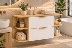 - Dwie pojemne szuflady w szafce – idealne na akcesoria łazienkowe